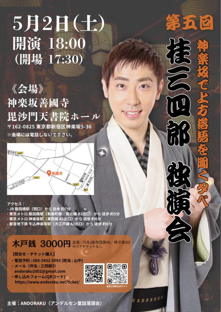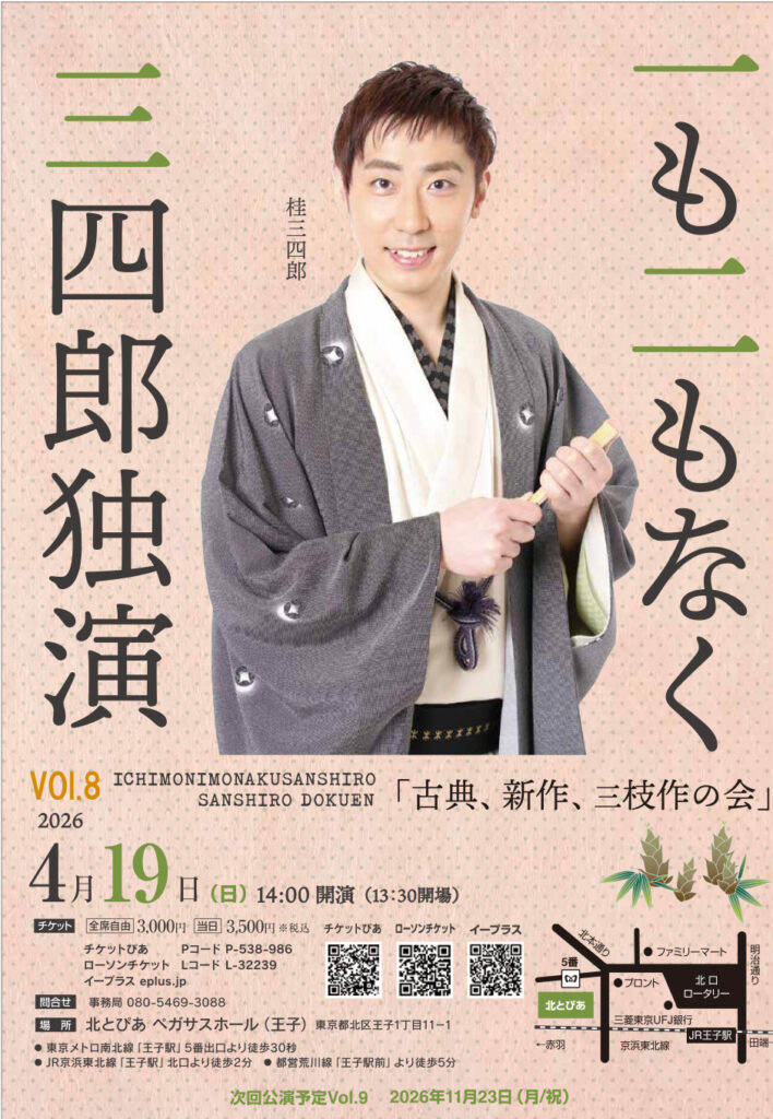 落語家 桂三四郎とフィルムメイカー あの田中がタッグを組んで、新作落語会議と新作お披露目を交互に毎週生配信するプロジェクト。