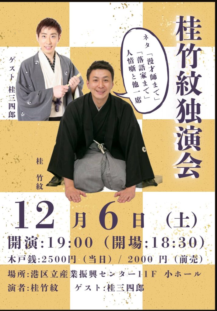 《東京》 桂竹紋独演会 桂三四郎がすごく可愛がっている後輩 桂竹紋の独演会にゲスト出演いたします。 おすすめ公演です。 お問い合わせ チラシを参照 または 桂三四郎公式ライン https://lin.ee/NqWqrZ6 Tweet 二人三脚の会 スケジュール一覧 喜楽館アワードウィーク昼席